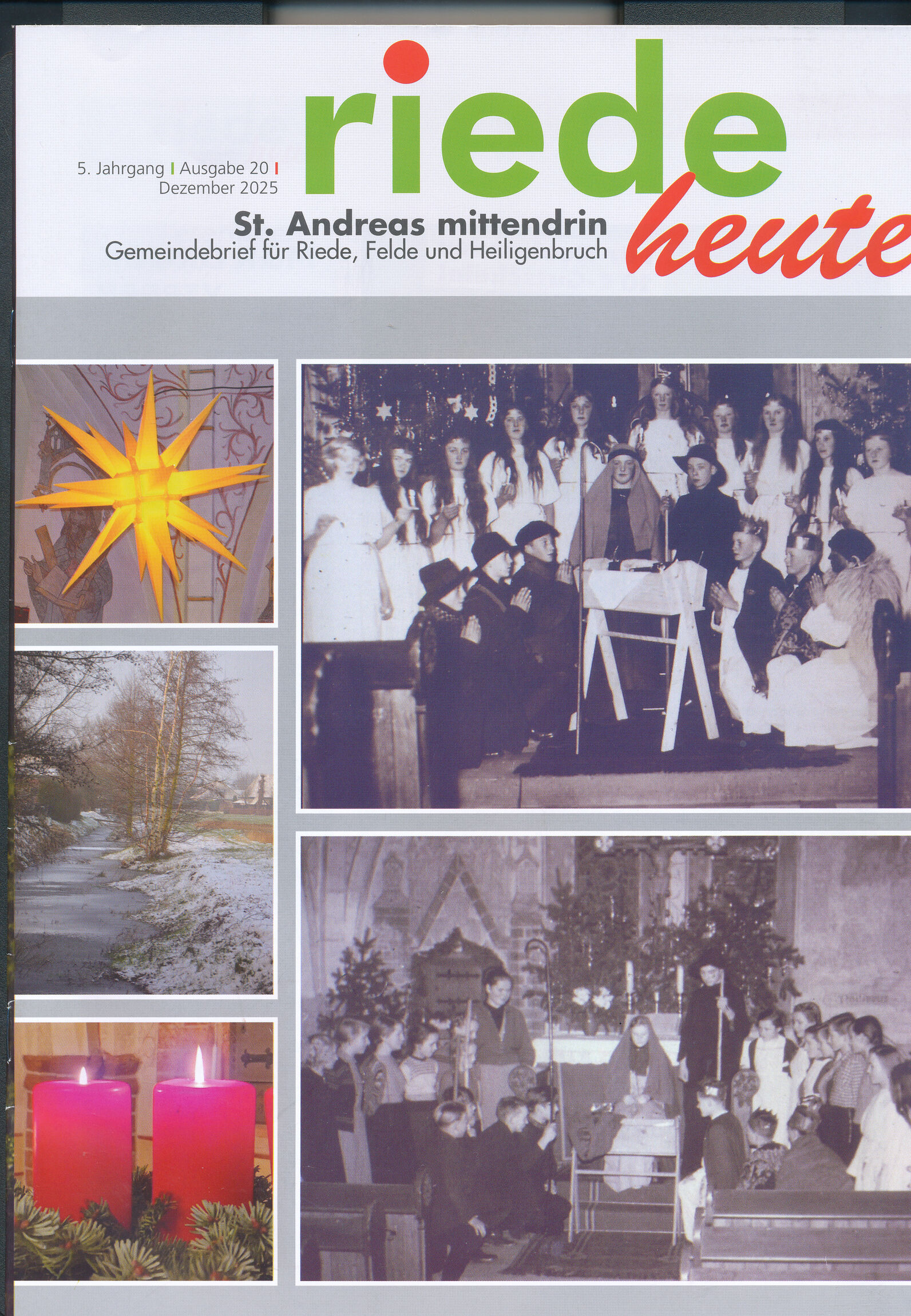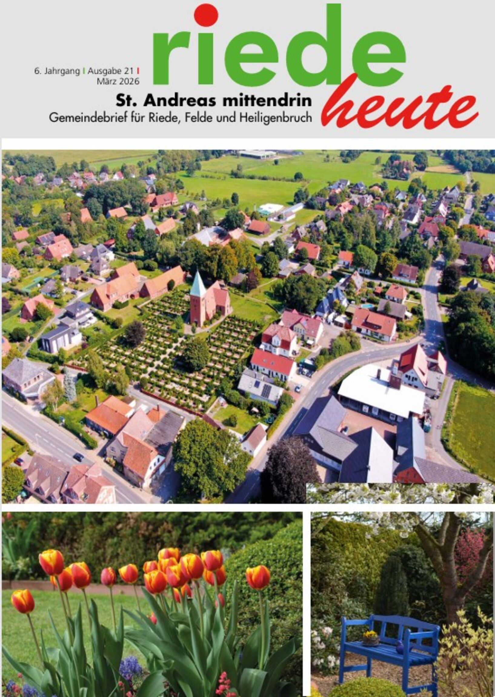 Seit Frühjahr 2021 gibt es ein gemeinsames Magazin aller Vereine und Verbände der Ortschaften Riede, Felde und Heiigenbruch, auch der Kirchengemeinde und der politischen Gemeinde: Riede heute - St. Andreas mittendrin.